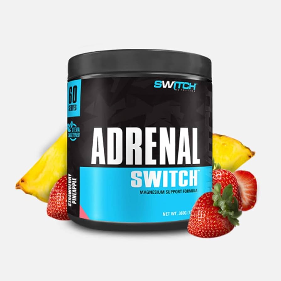 SWITCH NUTRITION Adrenal Magnesium Support Formula is scientifically formulated to restore magnesium levels and support healthy adrenal function. With 150g per serving, this formula contains naturally derived magnesium citrate blend, specifically designed to support the production of the body's natural stress response. Enjoy the sweet and tart refreshment of Strawberry Pineapple flavor every day.