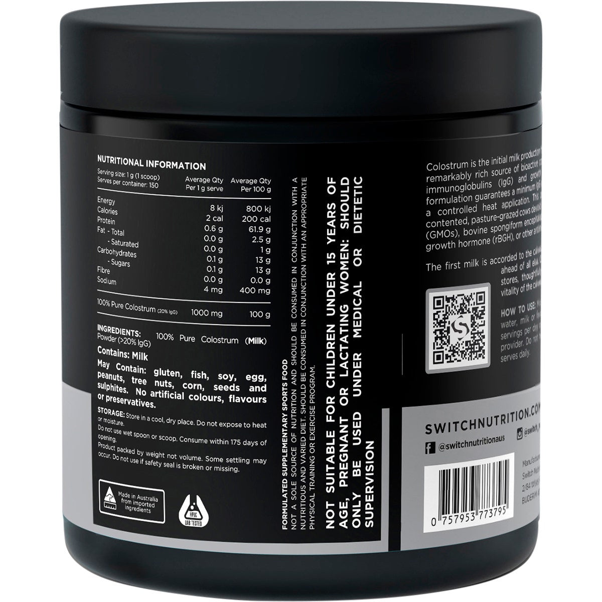 SWITCH NUTRITION Colostrum 100% Pure Colostrum Powder 150g