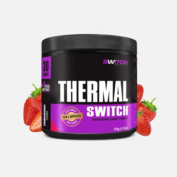 SWITCH NUTRITION Thermal Thermogenic Energy Formula provides an energy boost with just 2 servings per day. With no added sugar and natural flavors, this formula can help you reach your goals with its blend of green tea extract, caffeine, and guarana extract. Enjoy a burst of refreshing strawberry flavor with every serving.