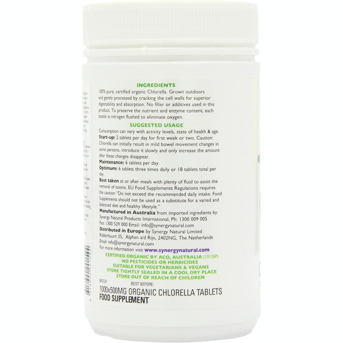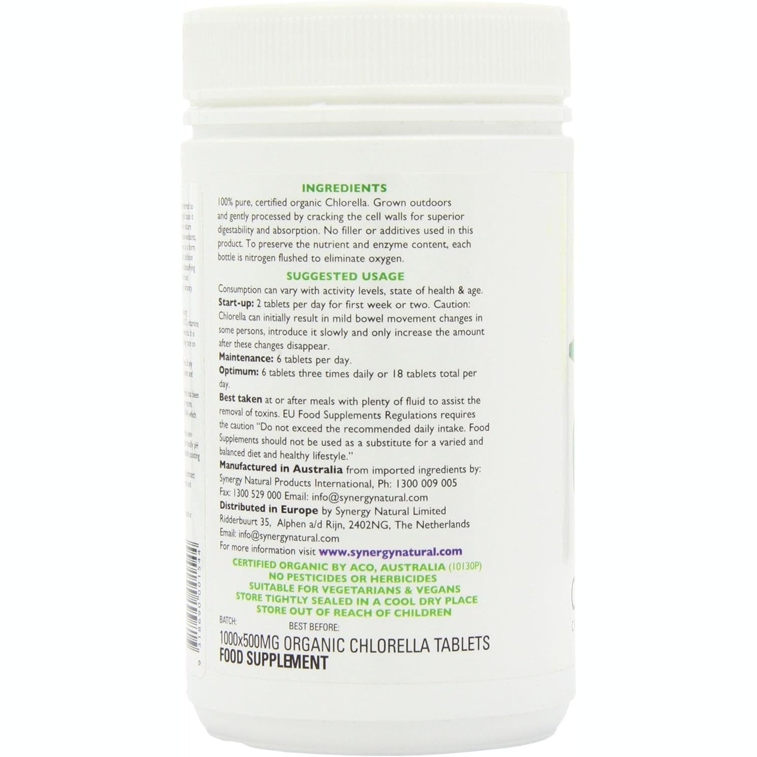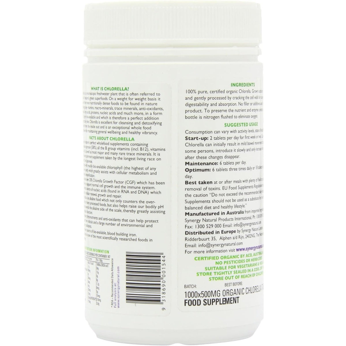 Synergy Natural Organic Chlorella 500mg 1000t