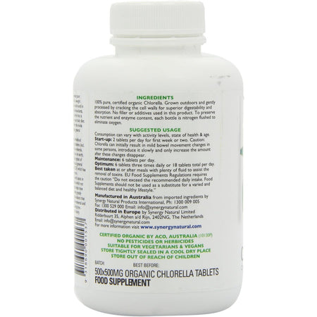 Best taken at or after meals with plenty of fluid (preferably pure water to assist the removal of toxins). You can take Chlorella with every meal or once a day. Perfect as a broad spectrum green superfood when mixed with Synergy Spirulina.