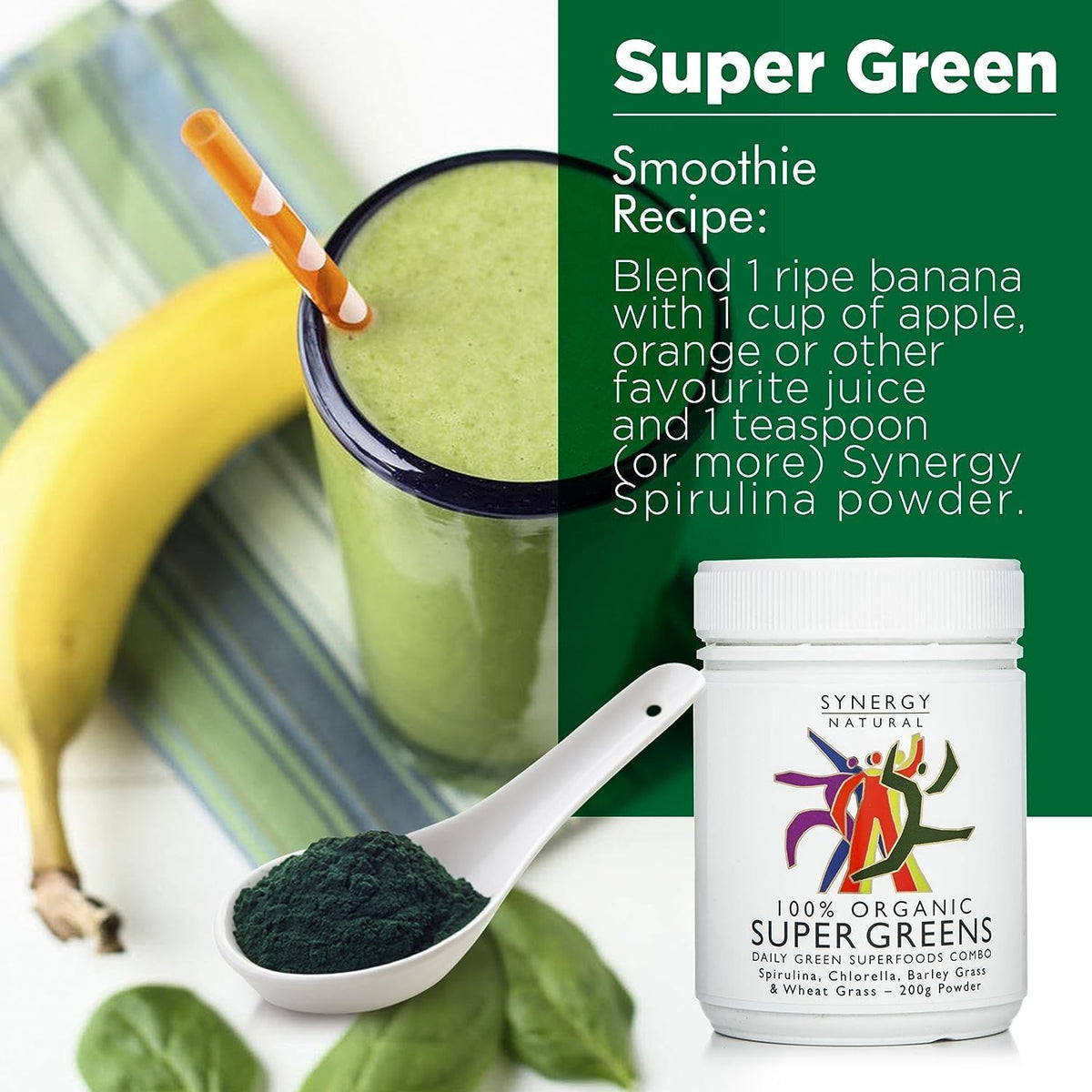 Synergy Natural Organic Super Greens (Spirulina, Chlorella, Barley Grass & Wheat Grass) Powder 100g