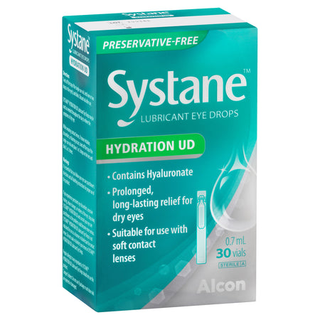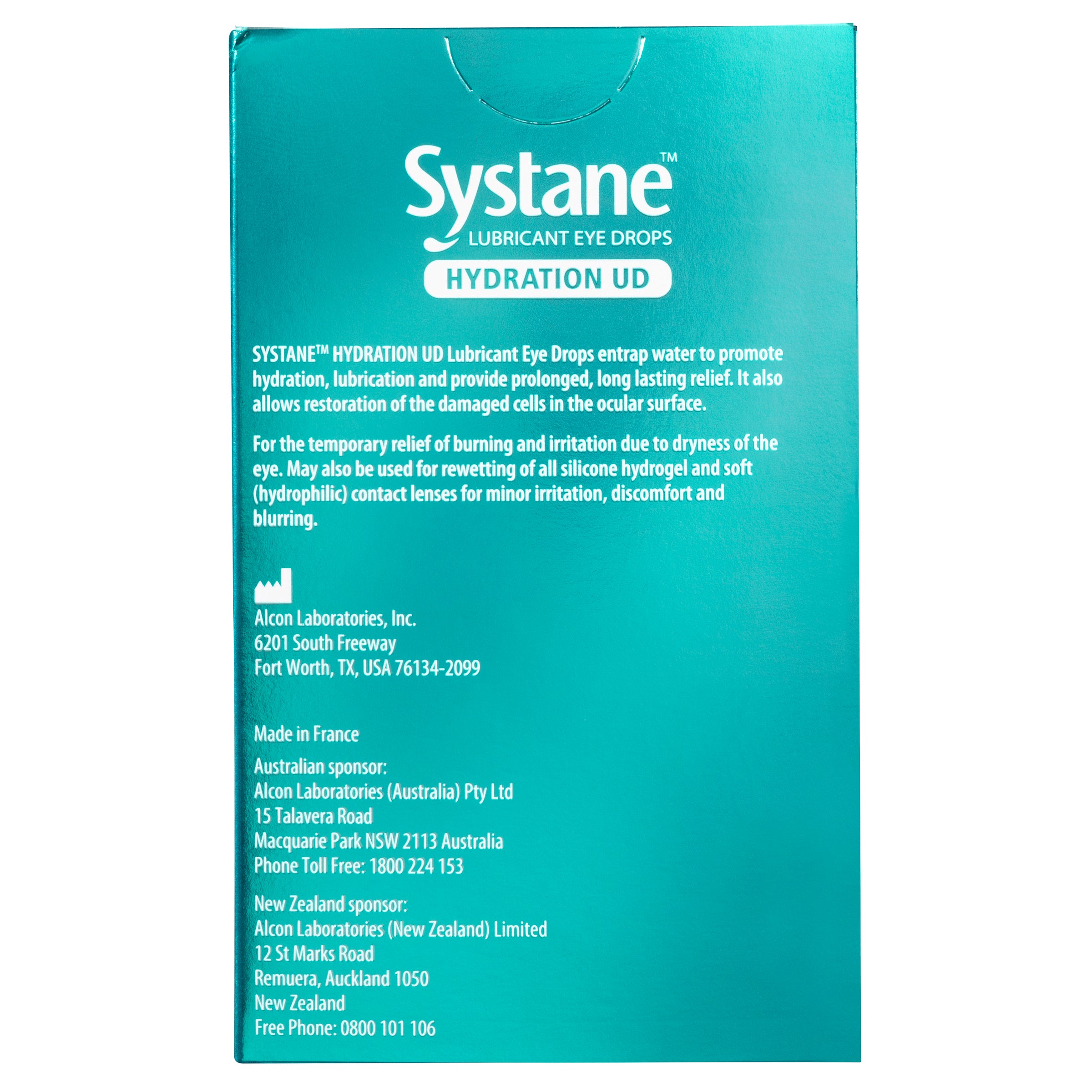 Systance Hydration UD Lubricant Eye Drops entrap water to promote hydration, lubrication and provide prolonged, long-lasting relief. It also allows restoration of the damaged cells in the ocular surface. For the temporary relief of burning and irritation due to dryness of the eye. May also be used for rewetting of all silicone hydrogel and soft (hydrophilic) contact lenses for minor irritation, discomfort and blurring.