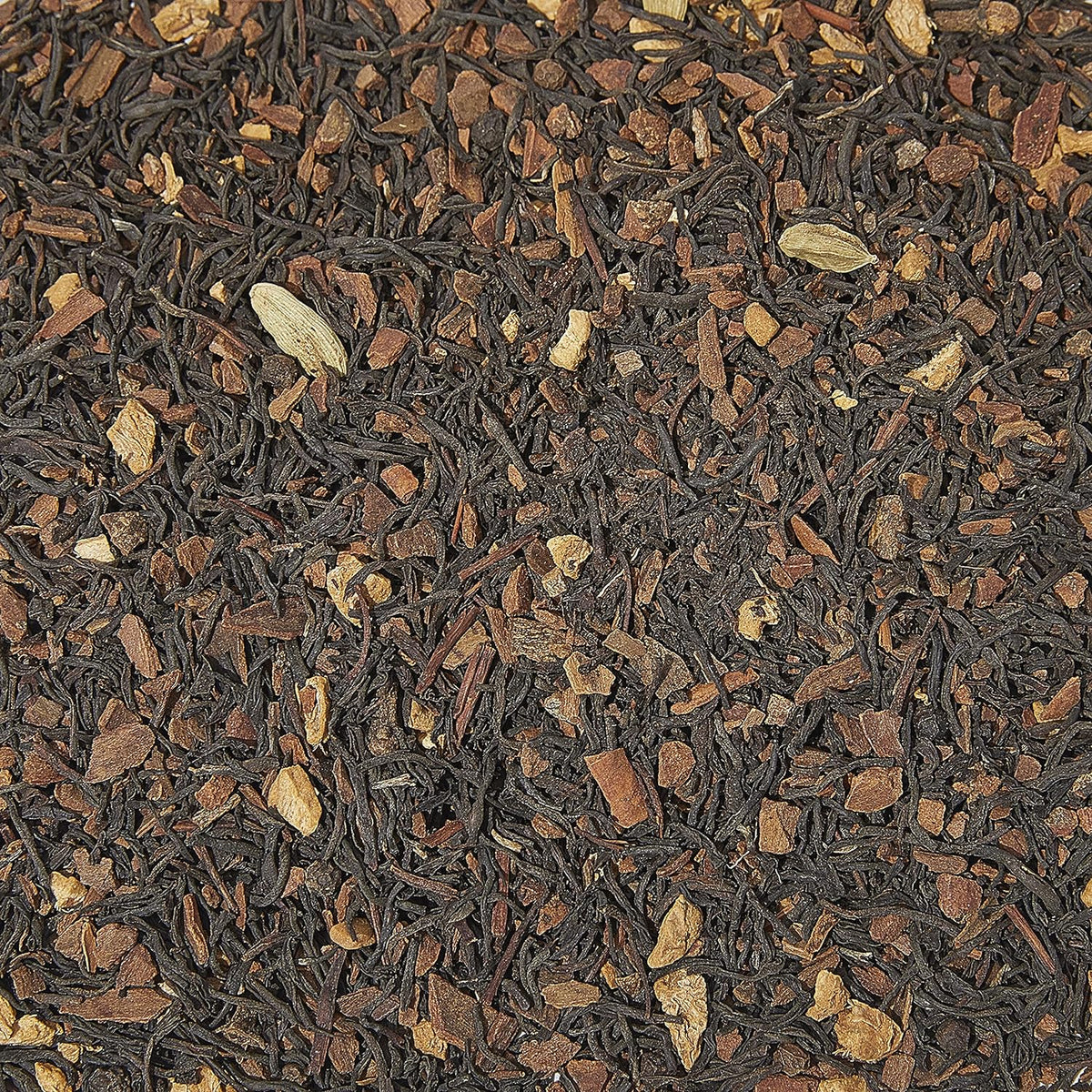 Black tea (Camellia sinensis), Ginger (Zingiber officinale), Cinnamon (Cinnamonum aromaticum), Cloves (Syzygium aromaticum), Cardamom (Elettaria cardamomum), Licorice root (Glycyrrhiza glabra)