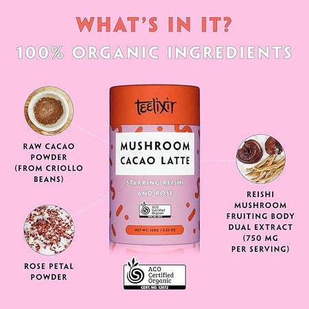 Teelixir Organic Mushroom Cacao Latte (Starring Reishi and Rose) 100g