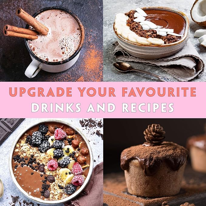 Ready to drink with your favourite plant based milk–hot or iced. Mix or blend 2 teaspoons with coconut oil or ghee for a rich and creamy taste to nourish the spirit. A delicious coffee alternative or the perfect upgrade to your tea, mocha, smoothies, dessert and baking recipes and more.
