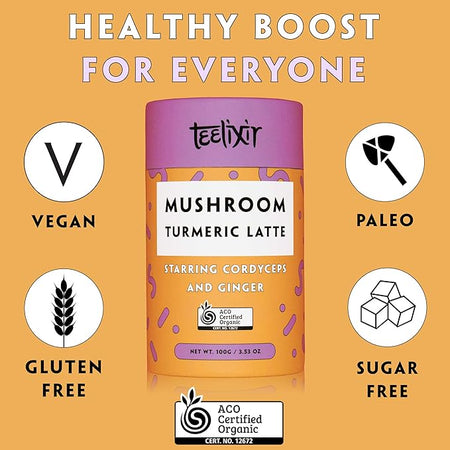 Teelixir Organic Mushroom Turmeric Latte (Starring Cordyceps and Ginger) 100g