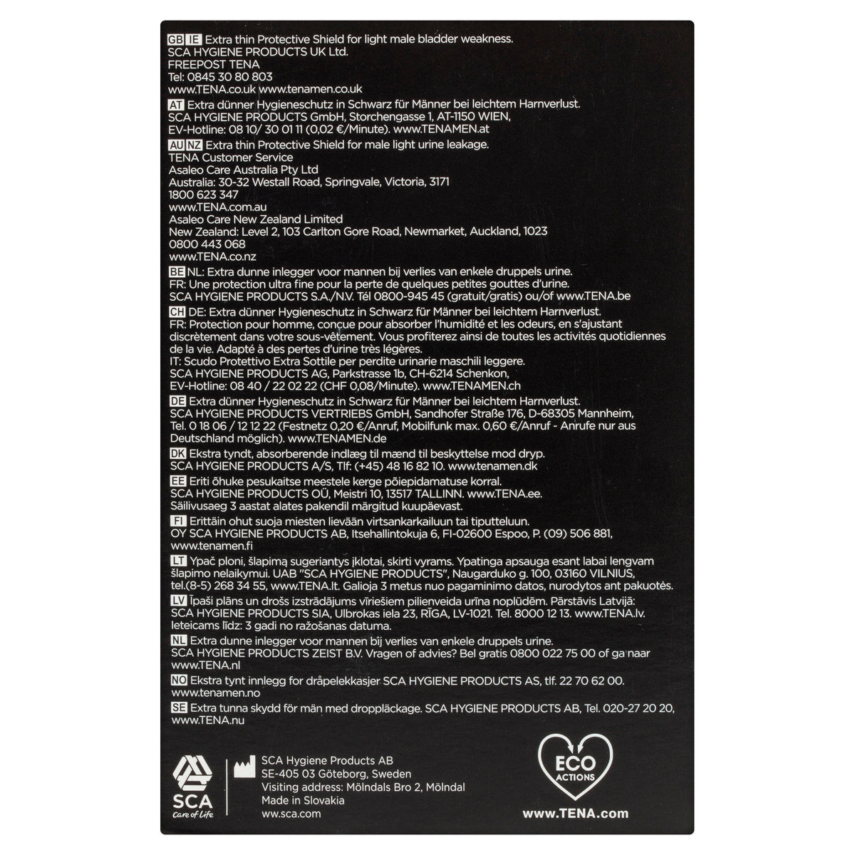 TENA Men Protective Shield is an incontinence pad for men, designed for very light incontinence. It has a masculine shape with an adhesive strip to hold it securely inside regular underwear. Just 3mm thin but has a secure absorbency to lock away any drips and small dribbles.