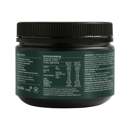 Probiotic + Prebiotic is a dual-action, low FODMAP formulation for gut health. Loaded with clinically proven ingredients such as Actazin™ (green kiwi) to promote bowel regularity and probiotics Unique IS-2™ bacillus coagulans to improve the gut microbiome and support digestive health. Combined with gut-supporting nutrients L-glutamine and taurine this is designed as a go-to symbiotic powder for restoring gut health.
