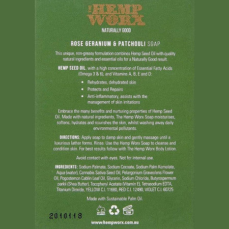 The Hemp Worx Rose, Geranium & Patchouli Soap 120g