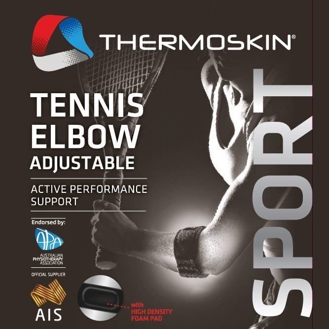 The Thermoskin Sport Tennis Elbow provides compression, support and warmth for weak or injured elbows during periods of increased activity. Tennis Elbow is a painful inflammation of the tendon on the lateral aspect of the elbow caused by the pull of the muscles, which extends to the wrist and fingers. Tennis Elbow effects 1-3% of people aged between 30 and 50, more commonly in men than women.