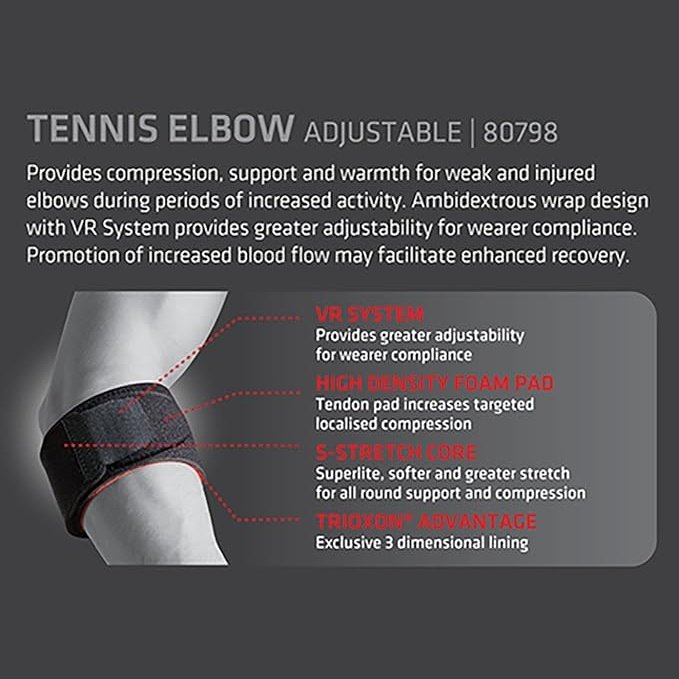 Tennis Elbow, is a common term referring to pain felt through overuse of the forearm, hand muscles and arm that results in pain felt in the elbow region. Tennis Elbow refers to damage to the outside muscles and tendons of the elbow where Golfer's Elbow refers to damage to the muscles on the inside of the elbow. Although many athletes suffer from this condition, you do not need to play tennis or golf to get this injury.Key features and benefits:
