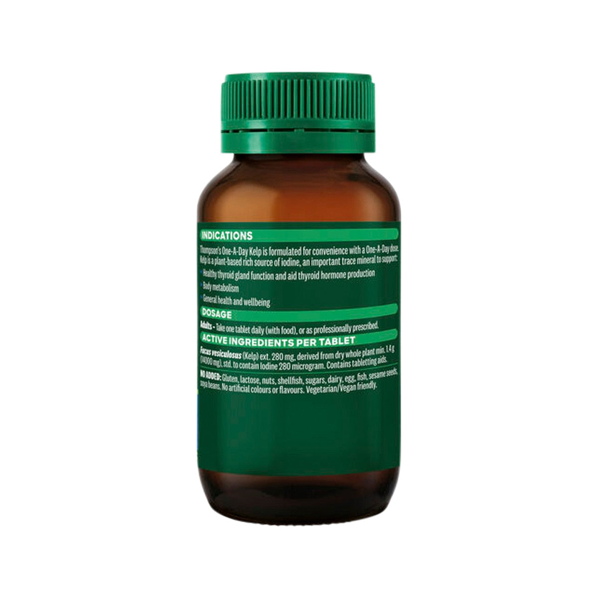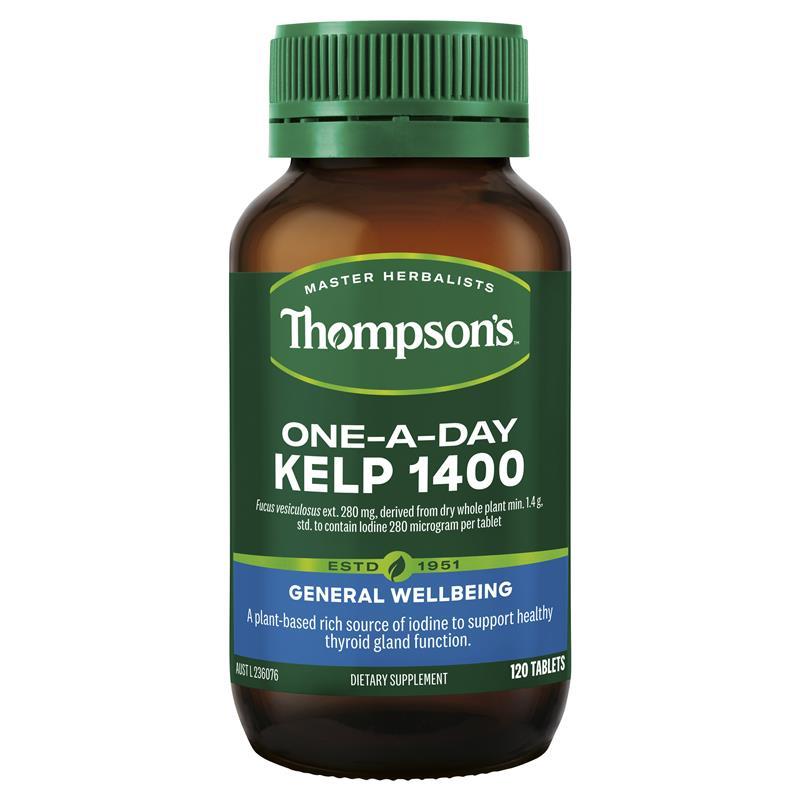 Thompson's One-A-Day Kelp is a rich source of Iodine. An important trace mineral, Iodine is necessary for the production and function of thyroid hormones which play a role in healthy metabolism. It also helps support healthy body growth and development and helps maintain general health and wellbeing.Size: 120tabs.