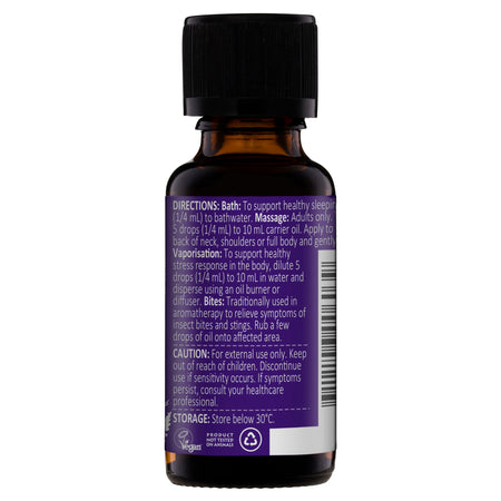 Bath: To support restful sleep and sleep quality, add 5 drops (1/4ml) to bathwater. Massage: To support a calm and peaceful mind, dilute 5 drops (1/4ml) to 10ml carrier oil. Apply to temples, forehead, back of neck, shoulders or full body and gently massage. Vaporisation: To create a calm & soothing environment, dilute 5 drops (1/4ml) to 10ml water and disperse using an oil burner or diffuser