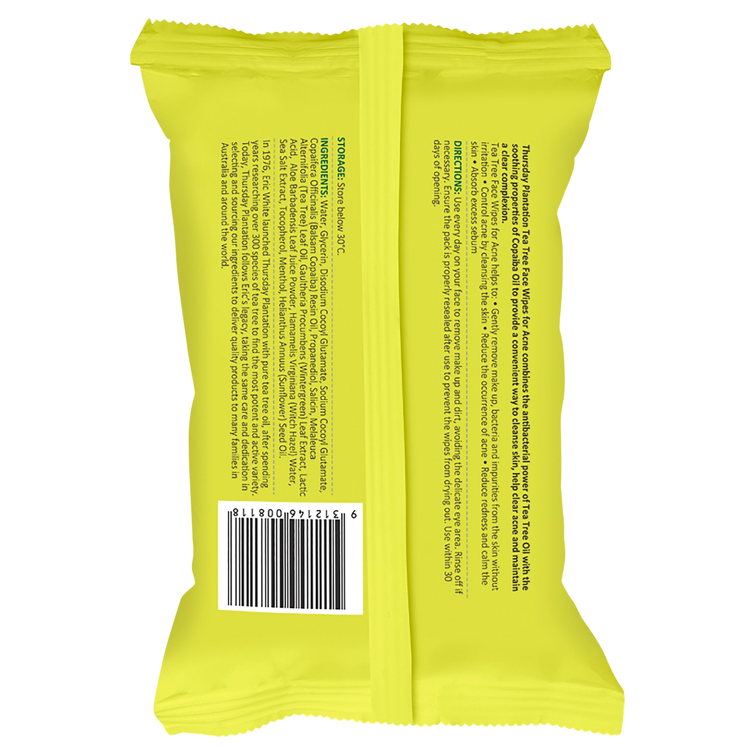 Thursday Plantation Tea Tree Face Wipes for Acne combine the antibacterial power of Tea Tree Oil with the soothing properties of Copaiba Oil to help clear the skin from acne and maintain a clear complexion.