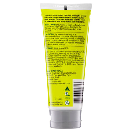Thursday Plantation’s Tea Tree Antiseptic Cream for minor cuts & abrasions relieves skin irritations and symptoms of insect bites & stings.
