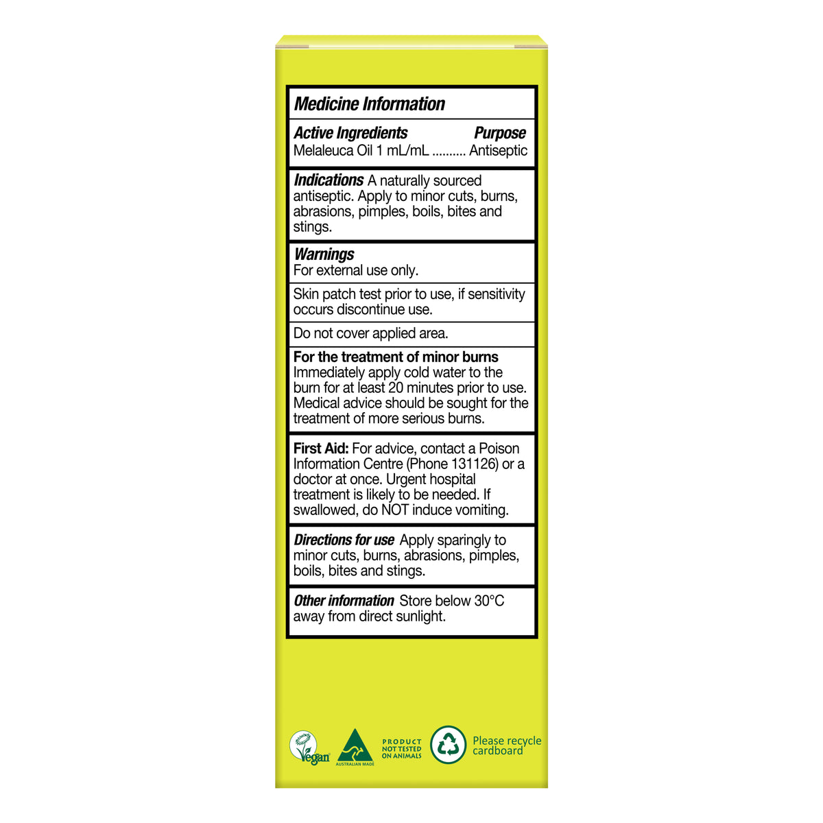 Active Ingredients: Melaleuca Oil 1mL/mL.