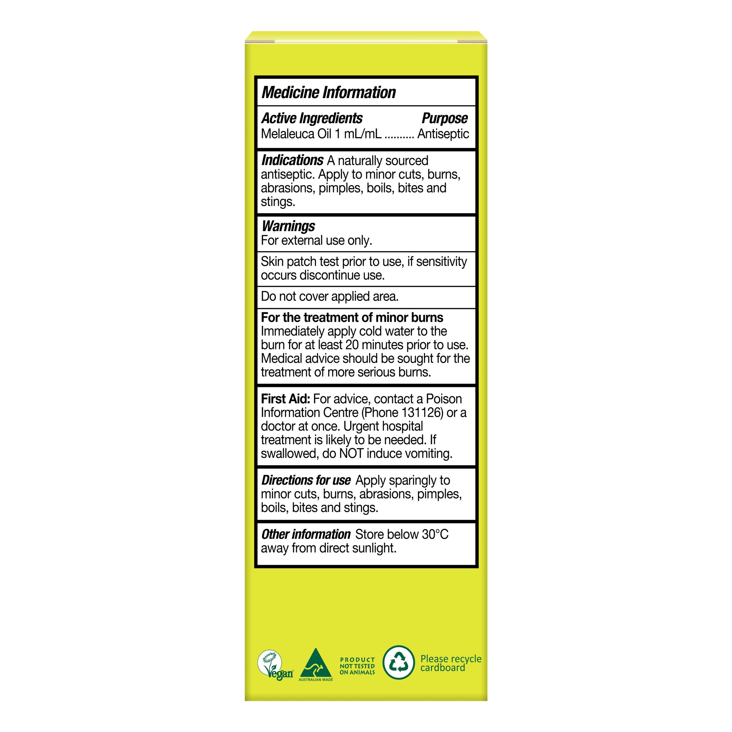 For advice, contact a Poisons Information Centre (Phone 131126) or a doctor at once. Urgent hospital treatment is likely to be needed. If swallowed, do Not induce vomiting. For the treatment of minor burns. Immediately apply cold water to the burn for at least 20 minutes prior to use. Medical advice should be sought for the treatment of more serious burns.