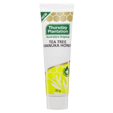 Thursday Plantation Tea Tree Manuka Honey Wound Balm supports relief of minor skin damage, minor wounds and abrasions. Tea Tree Oils is a naturally sourced antiseptic.