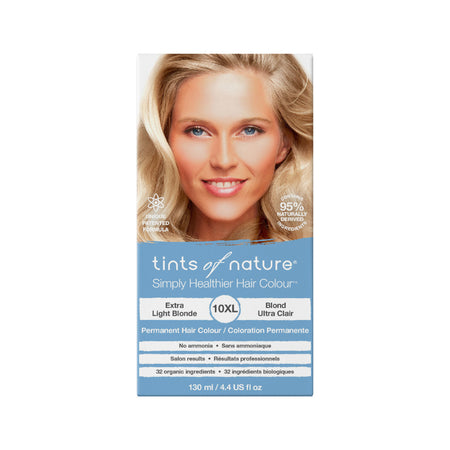 Rediscover happier, healthier hair with Tints of Nature 10XL Extra Light Blonde patented permanent hair dye, for a cool, bright blonde.