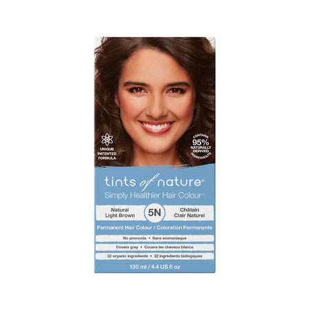 Rediscover happier, healthier hair with Tints of Nature 5N Natural Light Brown patented permanent hair dye for a natural light brunette full of shine.