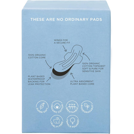 100% Organic Cotton Top Sheet, 100% Organic Cotton Primary Core, TCF Sustainably Harvested Cellulose Absorption Core, Mater-Bi Bioplastic Barrier Back Sheet.TM55CPP