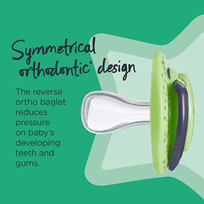 • Symmetrical Orthodontic Shape.• Reversible soother teat.
