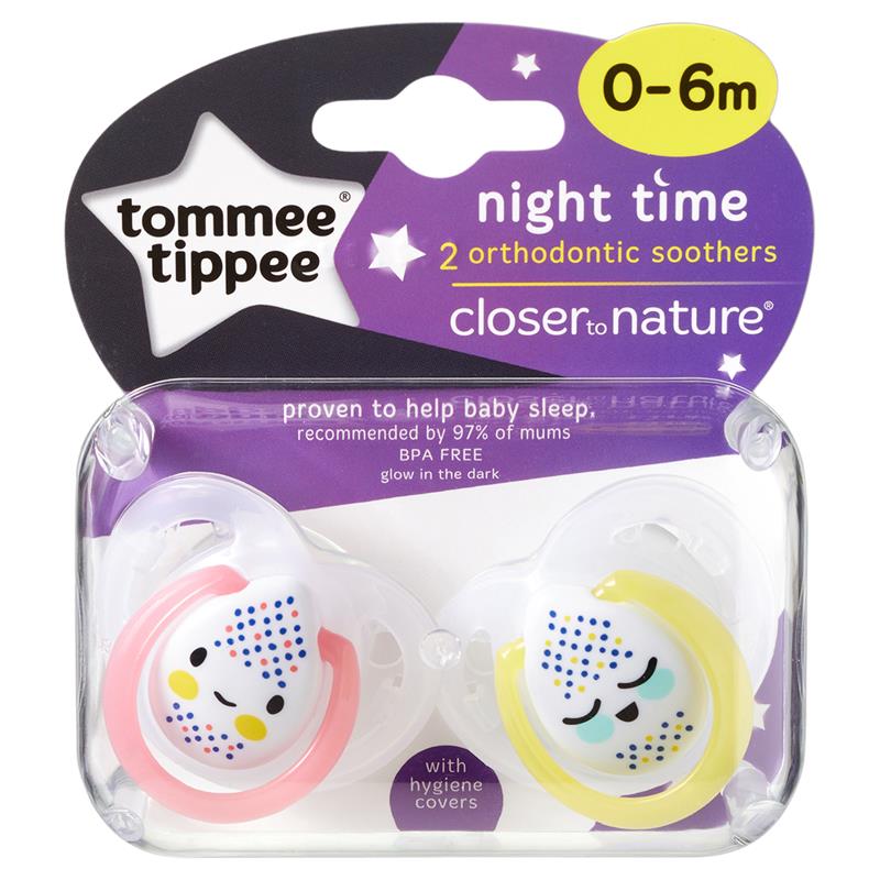 Tommee Tippee Closer To Nature Night Time Soothers 0-6 Months 2 Pack (Colours May Vary)