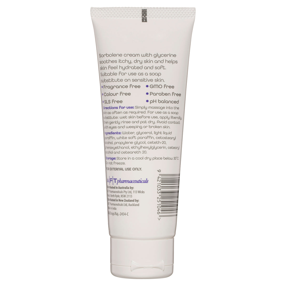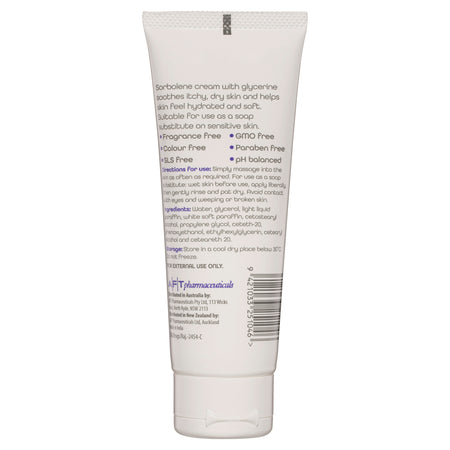 Sorbolene cream with glycerine soothes itchy, dry skin and helps skin feel hydrated and soft. Suitable for use as a soap substitute on sensitive skin.