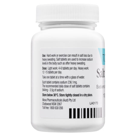 Hard work or exercise can result in salt loss due to heavy sweating. Salt tablets are used to increase sodium levels in the body such as after heavy sweating.Size: 100 Tablets