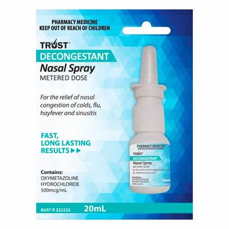 Trust Decongestant Nasal Spray helps to relieve the nasal congestion of colds, flu, hayfever and sinusitis.