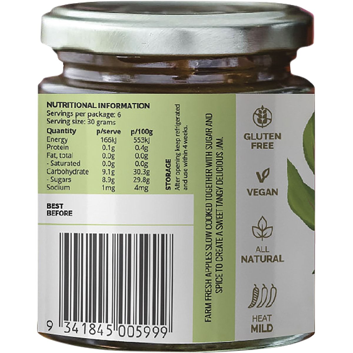 West Australian Apples (86%), Raw Sugar, Vinegar, Water, Garlic and Chilli (1%).TU31CPP