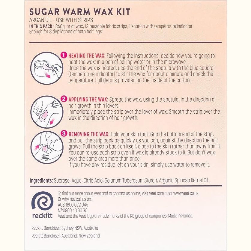 Veet Sugar Warm Wax Hair Removal Kit, with 100% naturally sourced ingredients, is inspired by Egyptian wax recipes to give you high-quality hair removal at home with an effective sugar formula