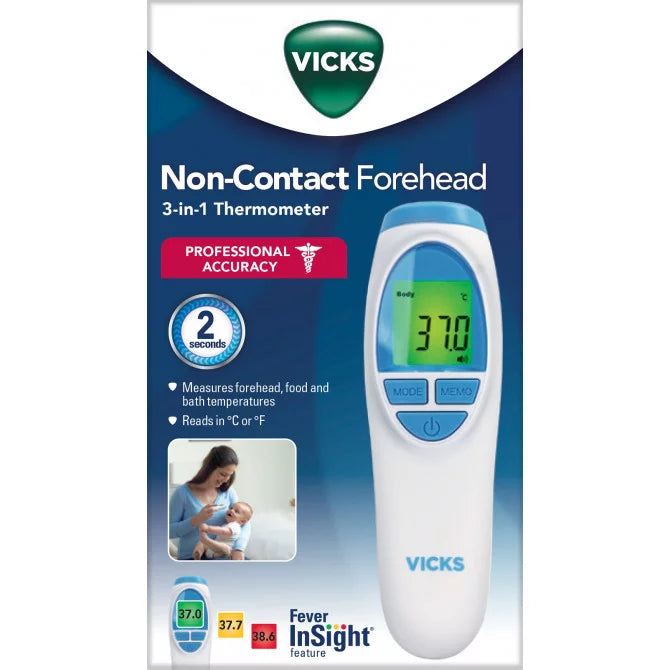 The Vicks No Touch Thermometer minimizes the struggle or stress of temperature taking with 2-second accurate forehead readings.