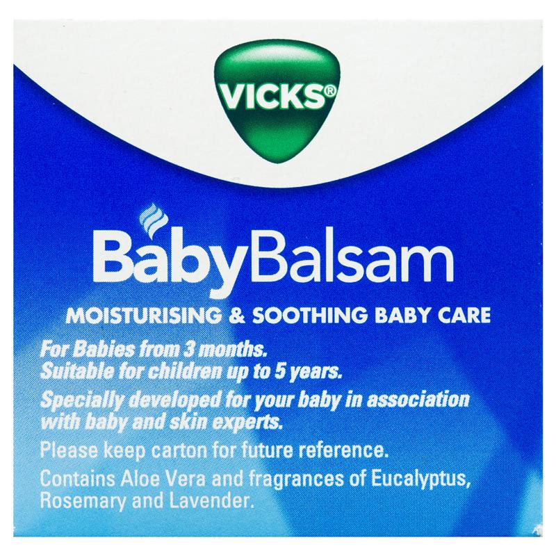 • Together with your loving touch, Vicks Baby Balsam helps to gently calm, soothe and relax your baby.