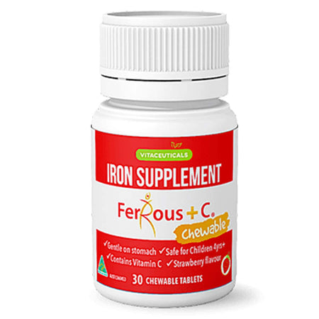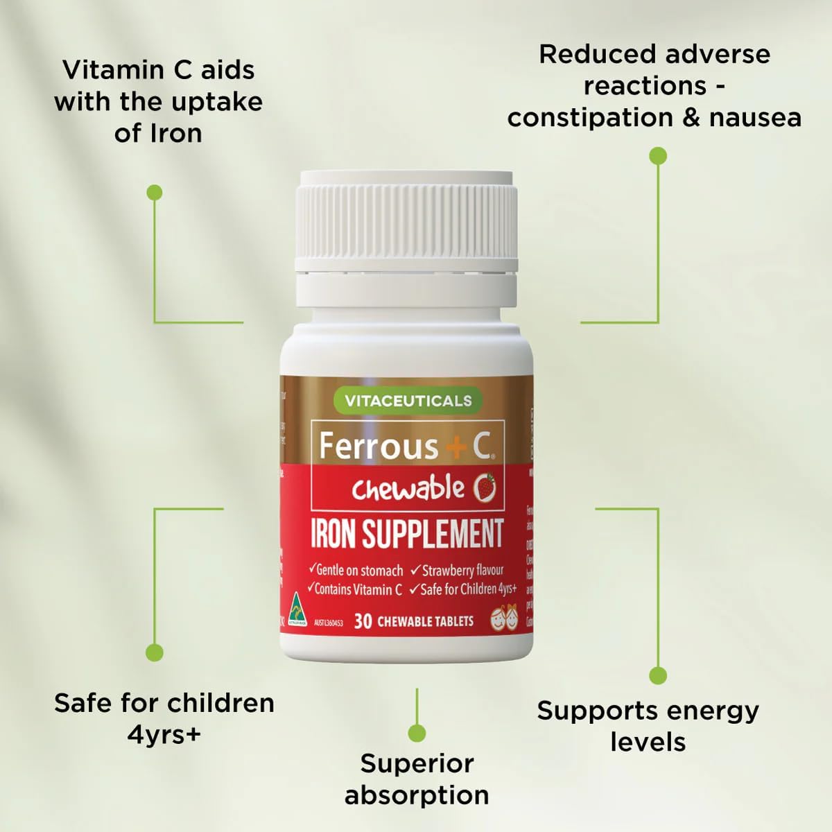 Vitaceuticals Ferrous + C Iron Supplement 30 Chewable Tablets