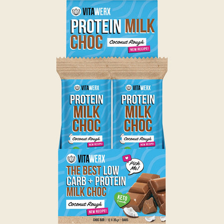 VITAWERX Protein Milk Chocolate Bar Coconut Rough 12x35g