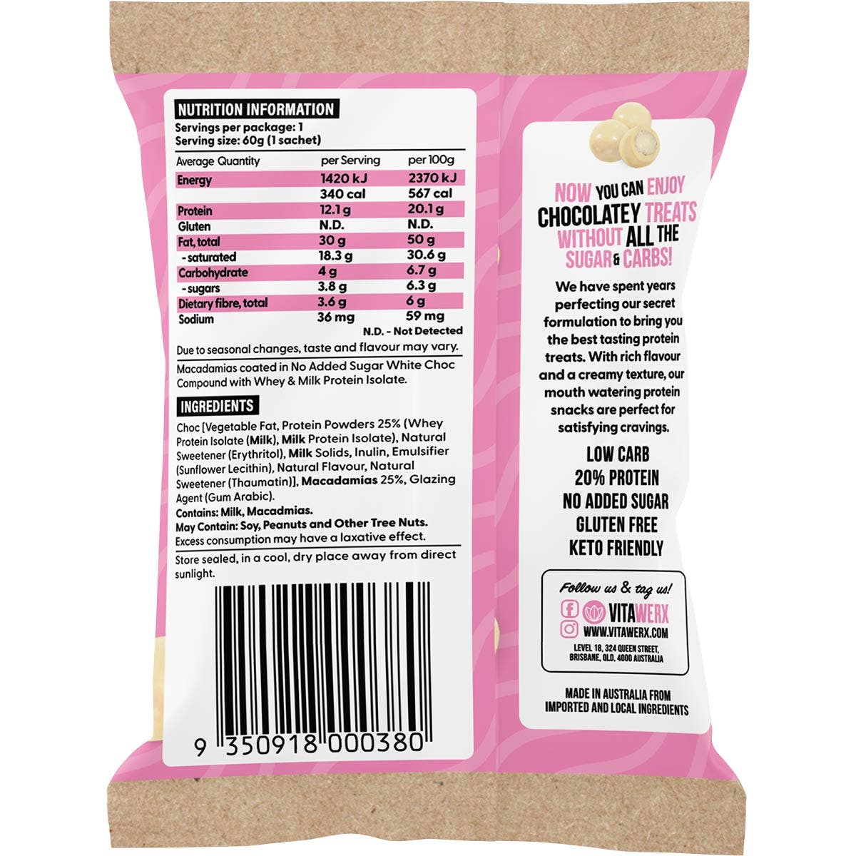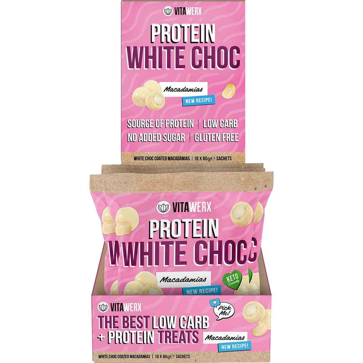 VITAWERX Protein White Chocolate Coated Macadamias 10x60g