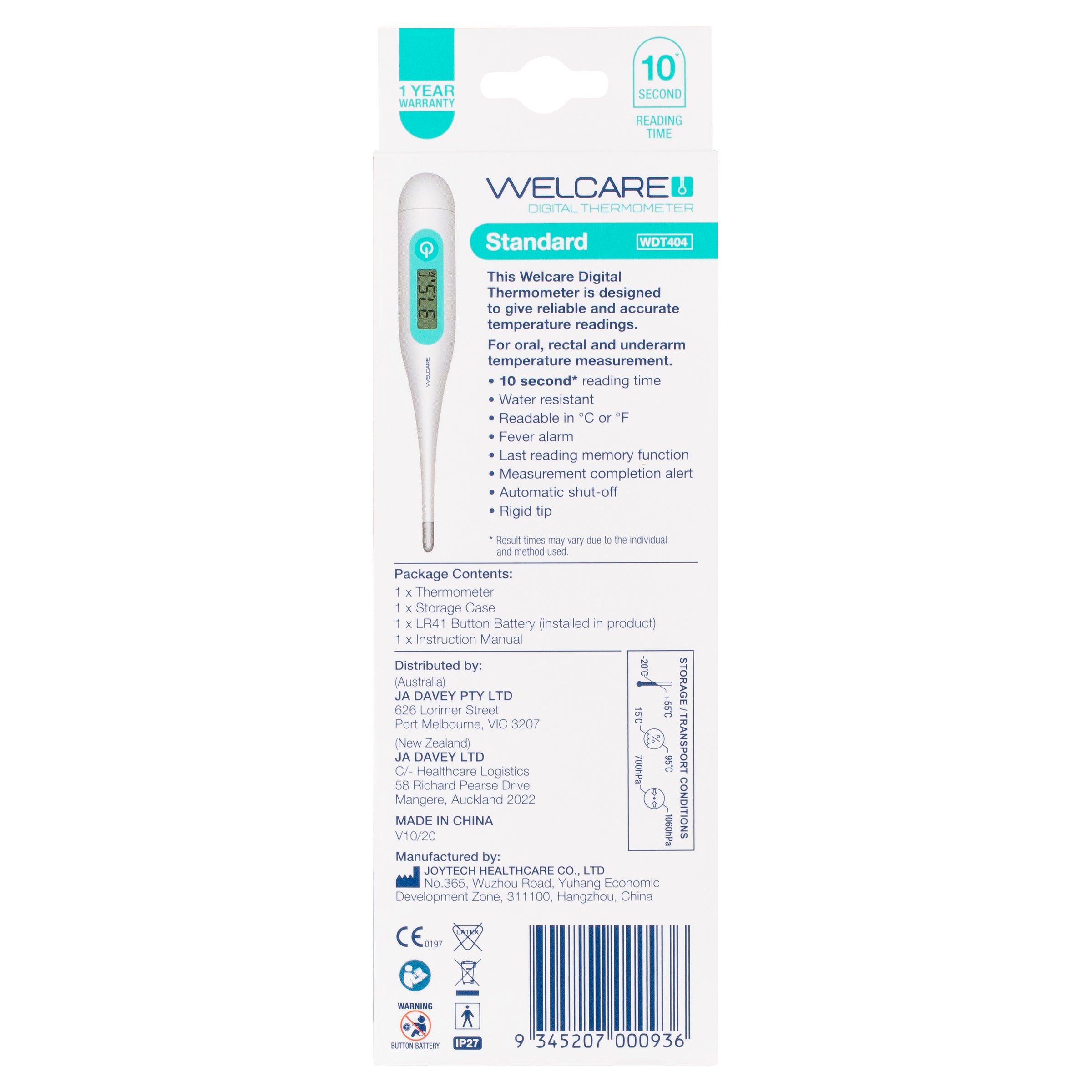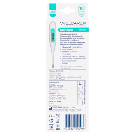 The Welcare Digital Thermometer- Standard is designed to give reliable and accurate temperature readings. For oral, rectal and underarm temperature measurement.