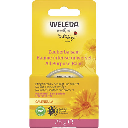 Weleda Baby Calendula All Purpose Balm creates an instant natural protective shield against drying out of the skin in cold and harsh weather.