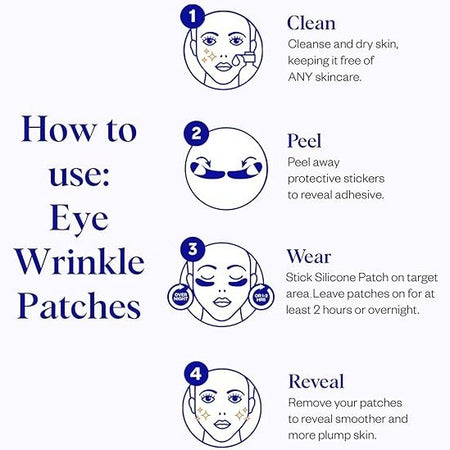 1. Cleanse and dry skin, keeping it free of ANY skincare 2. Peel away the plastic layer of the Silicone Patch to reveal adhesive 3. Stick Silicone Patch on the target area, adhesive side on the skin 4. Wear while you sleep for best results, or 1–2 hours for a boost 5. After use, gently peel off Patches, sticking them on the enclosed storage sheetWarnings: