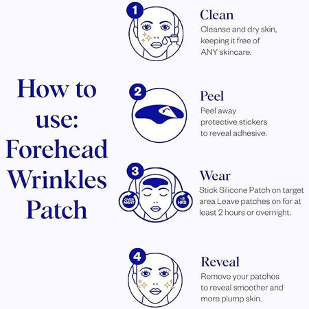 1. Cleanse and dry skin, keeping it free of ANY skincare 2. Peel away the plastic layer of the Silicone Patch to reveal adhesive 3. Stick Silicone Patch on the target area, adhesive side on the skin 4. Wear while you sleep for best results, or 1–2 hours for a boost 5. After use, gently peel off Patches, sticking them on the enclosed storage sheetWarnings: