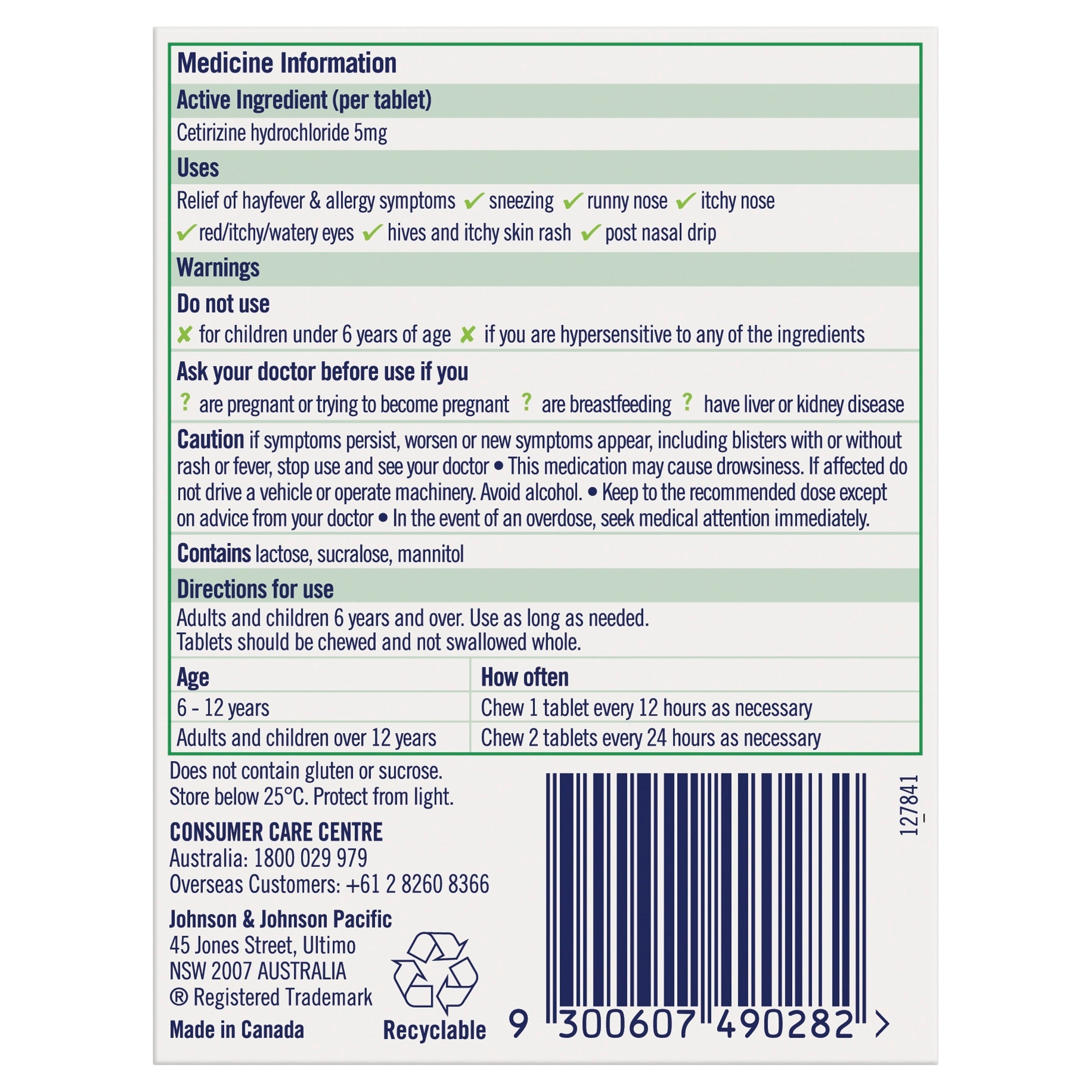 Zyrtec Chewables cetirizine antihistamine for Kids 6+. For fast-acting 12-hour relief from hayfever & allergy symptoms including sneezing, itchy & runny nose, red, itchy & watery eyes, hives & itchy skin rash, and post-nasal drip.